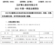 挖贝网4月12日,五矿稀土(000831)近日发布2021年第一季度业绩预告,预计业绩同向上升。报告期内归属于上市公司股东的净利润9,594万元10,594万元,比上年同期增长702.64%786.30%;基本每
