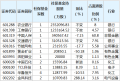 从持股比例看,社保基金持有比例最多的是中国人保,持股量占流通股比例为60.8%;社保基金持股数量在1亿股以上的共有12只,社保基金持股量最多的是农业银行,共持有235.21亿股,工