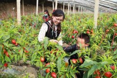 3月27日,游客在李才村大棚内采摘油桃。 山东省聊城市冠县东古城镇李才村是传统的农业村。近年来,东古城镇出台资金扶持政策,帮助李才村农民发展大棚油桃产业。现在全村油桃大