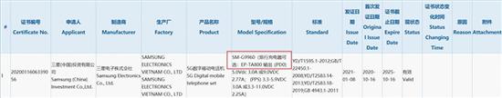 爆料称:型号为SM-G9960的三星新机获得3C认证。