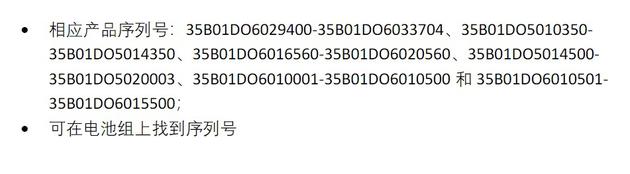 以下为召回的产品序列号: