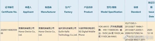 荣耀V40 5G获3C认证