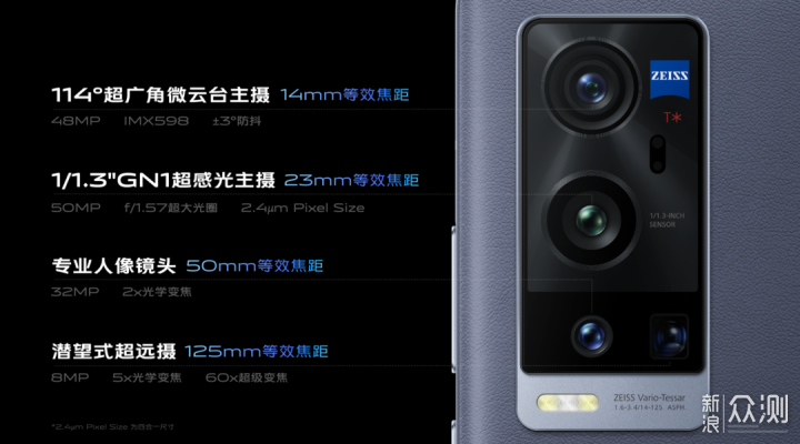 先来看看vivo X60 Pro+整机5枚摄像头的规格。