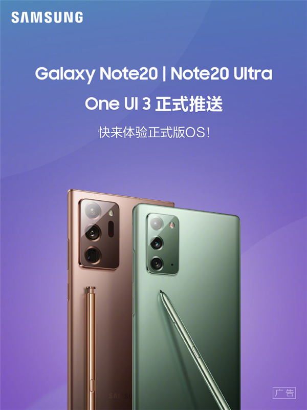 1月27日消息,今日,三星GALAXY盖乐世官方微博宣布,国行三星Galaxy Note 20和Note 20 Ultra两款机型已正式推送基于安卓11打造的One UI 3正式版。