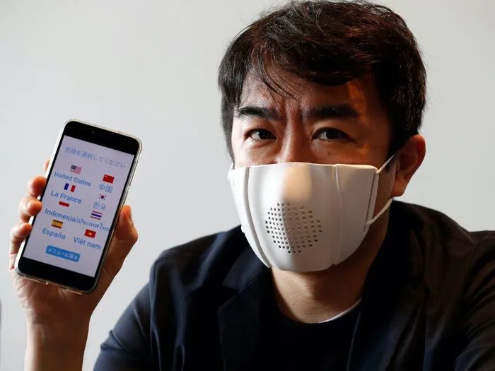 同样在七月,日本一家名为 Donut Robotics 的公司研发了一款可以讲使用者说的话转化为 8 国语言的口罩。这款口罩通过蓝牙和智能手机应用连接,将文字翻译成文本信息在手机屏幕上显示。
