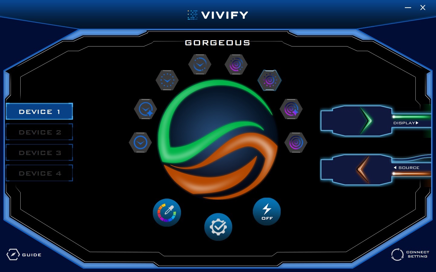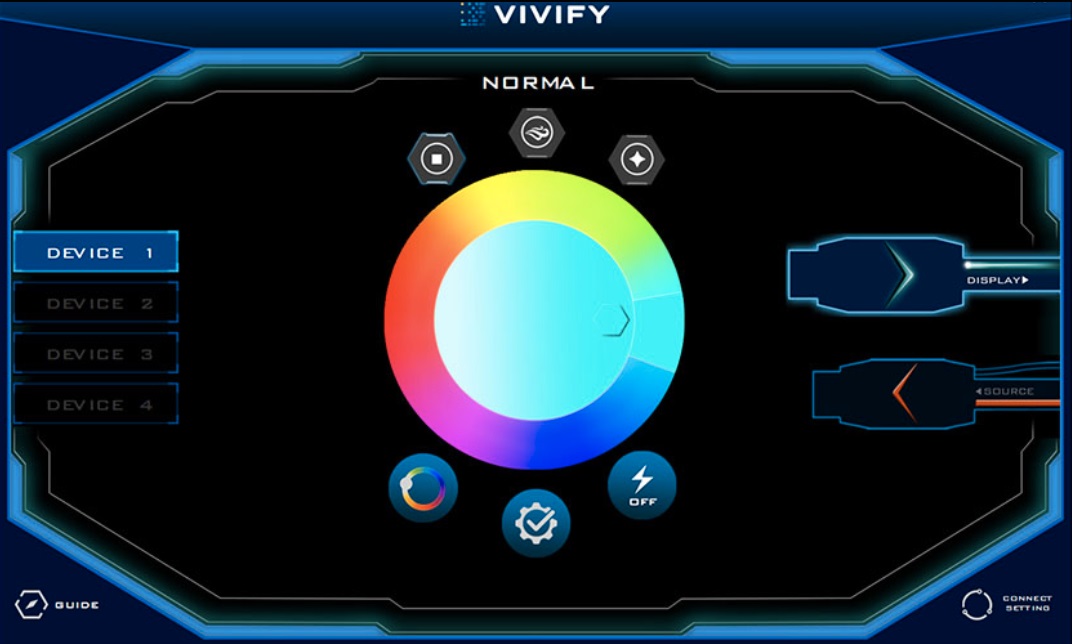 VIVIFY官方软件能够提供丰富的光效,用户可自由选取颜色、设置闪烁效果。
