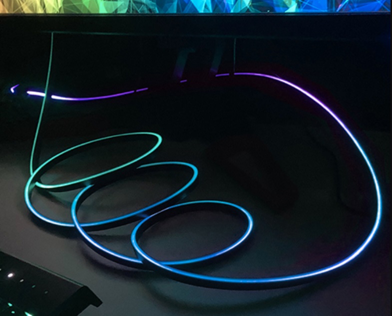 这款产品支持 HDMI 2.0b 协议,最高带宽 18Gbps,支持 4K 60Hz 视频显示、HDR10 协议以及 HFR 协议。线材横截面为长方形,内置一根导光光纤,侧面有着磨砂保护层,可以提供平滑一致的光效。