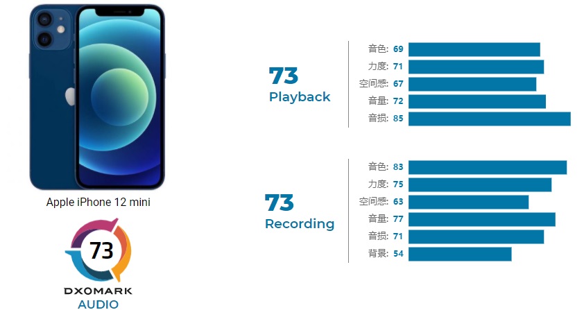 IT之家 3 月 5 日消息 DXOMARK 昨日公布了苹果 iPhone 12 mini 的音频评测结果,最终得分 73 分持平 iPhone 12,DXO 评价为 “小身板大音量”。
