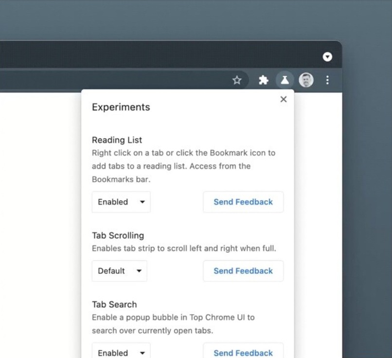 另外,每个实验性功能都带有一个 “发送反馈”按钮,用户可以点击该按钮以分享他们对新功能的想法。