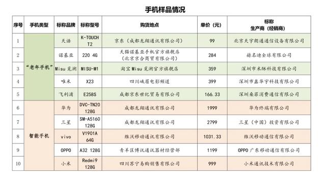 为选出适合老年消费者使用的手机,根据市场调查情况,四川省消委对10款销量较好“老年手机”及老年消费者喜欢购买的智能手机进行测试,价格从99元至2800元不等。检测指标11项,包括安全规范、易用性和耐用性三大类。