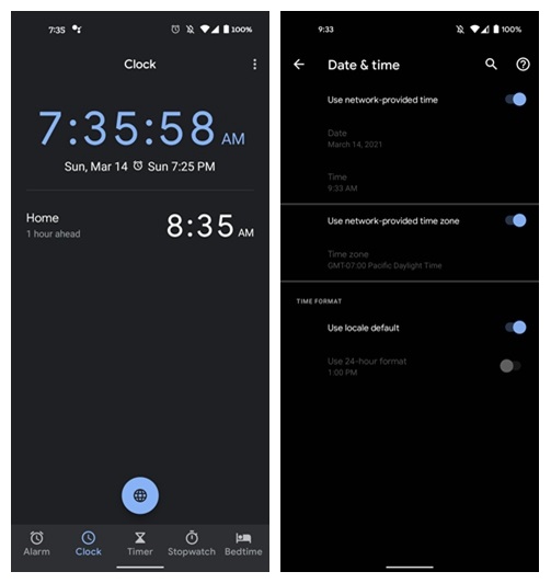 报道称,各代谷歌 Pixel 手机用户的时间没有从凌晨 2 点跳到 3 点,对于一些人来说,这个问题激活了谷歌时钟应用的 “自动家庭时钟”功能,当你 “在时间不同的地区旅行”时,会增加 “家庭的时钟”。在时钟应用中,这些用户出现了正确的夏令时时间出,只是系统中没有出现。