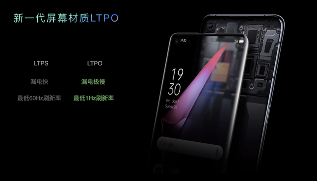 LTPO作为新一代屏幕材质,拥有漏电速度满与最低1Hz刷新率两个特点,而过去LTPS屏幕材质只能做到60Hz刷新率。为了实现1Hz-120Hz变频,OPPO还建立了超低频显示可靠性标准、超低频显示光学标准并且根据应用场景进行了精细化调教。