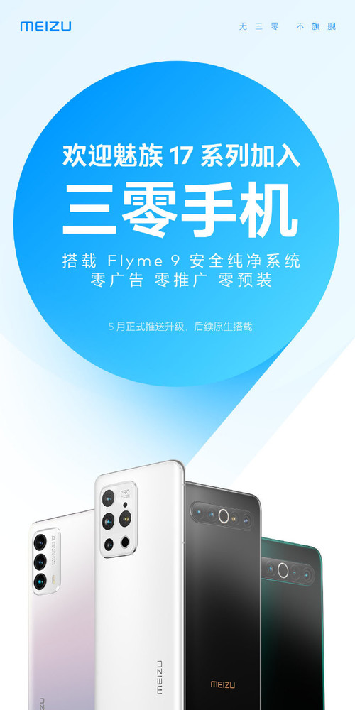 今天魅族官方正式宣布,魅族17系列也将加入“三零手机”家族。魅族将在今年5月为魅族17系列用户推送升级零广告零推送零预装的Flyme 9系统。另外,魅族还表示后续出厂的魅族17系列将原生搭载“三零”的Flyme 9系统。
