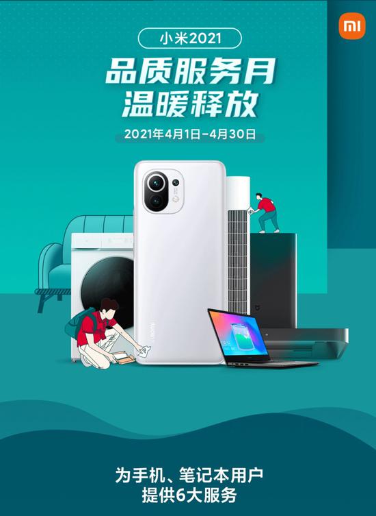 小米将于 4 月 1 日 - 4 月 30 日开启品质服务月活动,包括 0 元贴膜,8 折换手机电池、笔记本电池等。