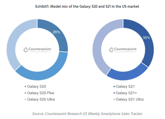 据外媒报道,Galaxy S21系列在美国继续保持着胜利的脚步,比它们的前代Galaxy S20明显成功。