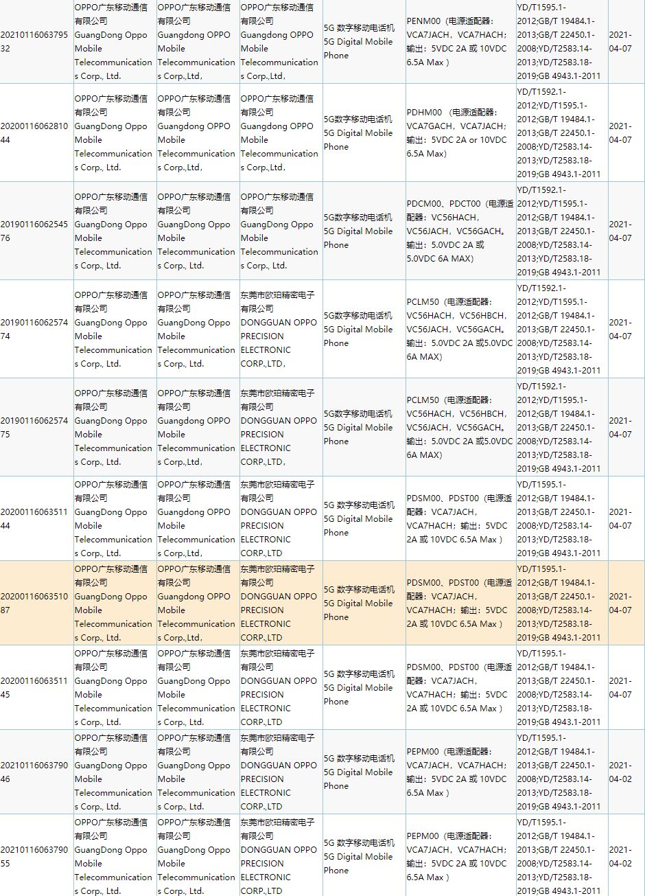 从认证信息可以看出,新机机型型号为 PENMOO、PDHM00、PDCMO0、PDCTOO、PCLM50、PDSM00、PDSTOO、PEPMOO,预计 OPPO 方面将在近期宣布。