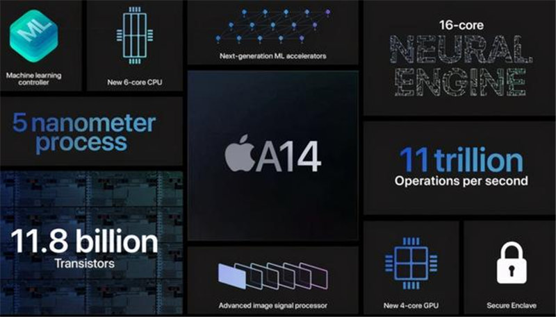 在手机移动芯片领域,苹果一直都是一家独大,每年发布的A系列处理器,基本上都是地表最强的手机芯片。就拿去年iPhone12搭载的A14来说,其采用了台积电最为先进的5nm制程,性能和功耗都要优于上一代的7nm工艺,而且华为和高通的5nm处理器,也不是A14的对手。