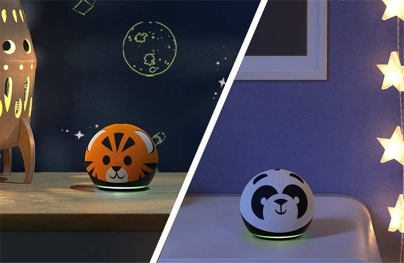 EchoDotKids智能音箱看起来与常规的EchoDot完全相同,但亚马逊在儿童版中添加了一些动物设计,包括老虎,熊猫等,这使得它真正适合孩子们的房间,也让这款音箱看起来更加有趣。