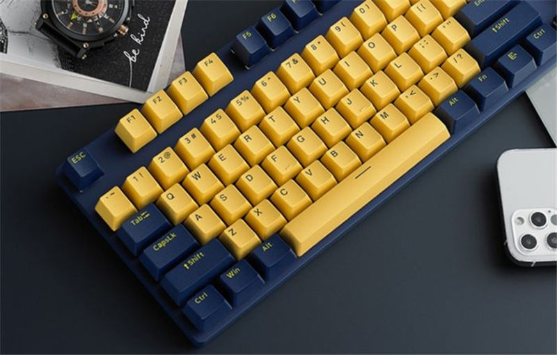 在键盘设计上,雷柏V500PRO拥有阳光活力的明黄与春智冷静的深蓝配色,字符、键帽颜色交错,带上它,无论去哪里你肯定都是最耀眼的崽。同时,它还搭载雷柏自主黑/青/茶/红轴机械开关,单轴6000万次使用寿命,并且后力与行程无明显变化,手感持久,长时间打游戏闯关不是问题。