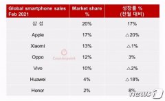 最近两年,全球智能手机格局大变,三星、苹果还是老大老二,第三的位置却从华为变成了小米。根据Counterpoint Research的数据,小米在2月份成为全球第三,华为的份额跌至第六。 Coun