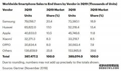 近日Gartner公布了对2019年第三季度全球智能手机的销量情况,在全世界范围内智能手机销量数据出现同比0.4%的下滑,总量为3.87亿台。 对于整体销量下降的分析中,Gartner认为消费者对智