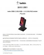 配件厂商贝尔金近日发布重要安全警告,宣布召回型号为 WIZ003 的便携式无线充电器 + 立式无线充电板。官方表示这款产品因制造缺陷 可能会发生故障和过热 ,从而引发火灾和电击危险