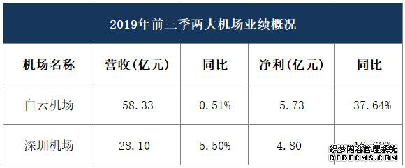 2019年前三季,白云机场营收58.33亿元,同比增0.51%;净利润5.73亿元,同比大减37.64%。