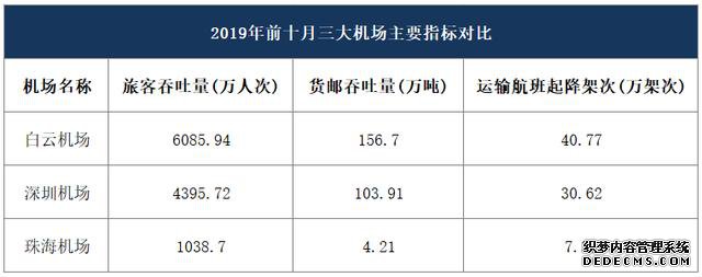 货邮吞吐量方面,珠海机场为4.21万吨,白云机场和深圳机场分别是156.7万吨和103.91万吨,差距十分悬殊。
