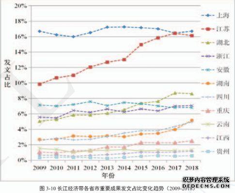 报告显示,长江经济带基础研究稳步前进,整体发文全国占比由2009年的48.84%增长至2018年的52.12%,国际科研合作、重要成果发文占比与影响也持续提升。
