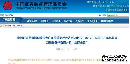 值得注意的是,早在今年8月28日,风华高科就发布公告称,收到中国证监会广东监管局下发的《行政处罚事先告知书》,公司涉嫌信息披露违法违规一案,已调查完毕,依法拟对公司及相关当事人作出行政处罚。根据《行政处罚事先告知书》,监管责令风华高科改正,给予警告,并处以40万元罚款;对公司其余涉案人员也给予相应的处罚。