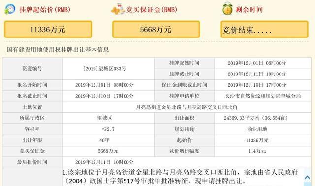 刚刚,[2019]望城区033号地块被湖南长高高压开关集团股份公司以11336万元底价拿下,成交楼面价1723元/㎡。