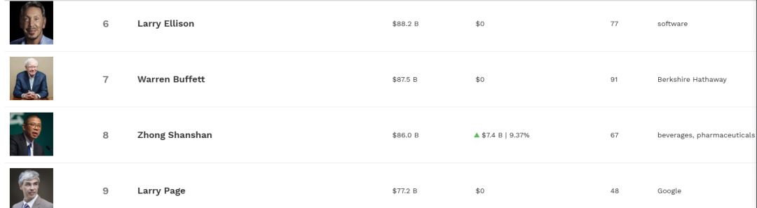 截至1月4日收盘,钟睒睒挤掉了马云、马化腾,不仅稳坐新晋亚洲首富的宝座,身家更是以860亿美元(约合人民币5555.69亿元)冲进全球富豪榜第八位,逼近排第七的股神沃伦·巴菲特(875亿美元),并超越谷歌创始人拉里·佩奇。