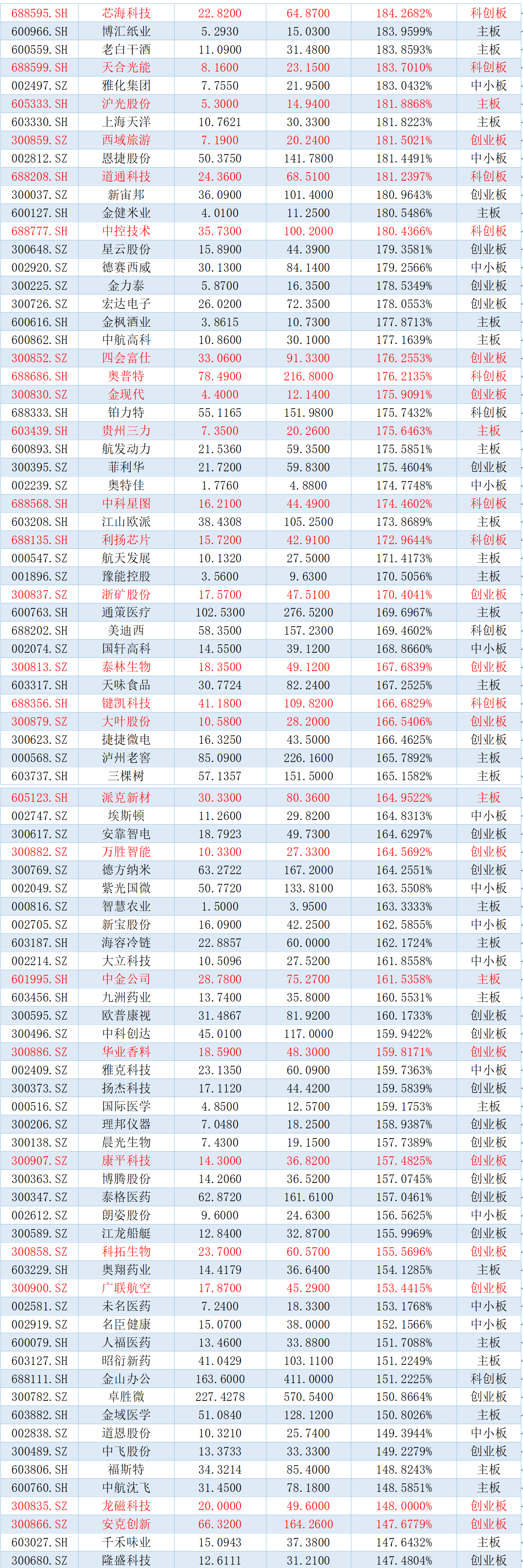 牛年第一个交易日可谓延续了2020年的强势行情,尤其是部分个股的表现堪称抢眼。刚刚过去的2020年,哪些个股实现了股价的强势翻倍乃至涨幅超5倍、10倍?时代商学院基于个股2019年底收盘价(前复权)、2020年底收盘价(前复权),统计A股4000多只个股在2020年全年的涨跌幅(若是2020年新股,则计算基准为该股上市首发价)。统计结果显示,合计有436只个股2020年涨幅翻倍,其中5只涨幅超10倍,19只超5倍。具体榜单如下(标红个股为2020年新股)。
