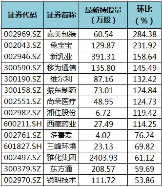 据wind统计显示,截至1月6日,共有698只个股获陆股通增仓,持股量环比增幅在5%以上的有213只,其中,环比增幅在50%以上的共有14只。环比增幅较大的有嘉美包装、兔宝宝、新乳业、移为通信等股。