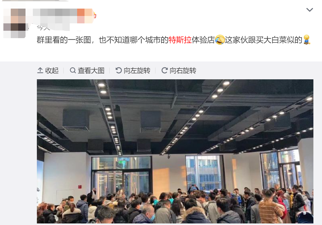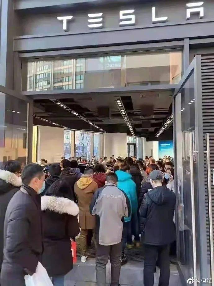 元旦假期,特斯拉门店被挤爆了。