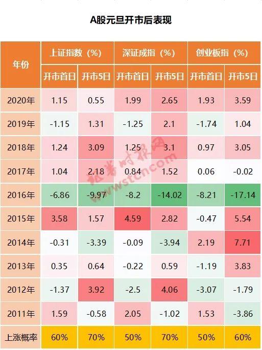 数据显示,开市首日,上证指数上涨概率总体偏高,达到60%。开市后5个交易日内,三大指数上涨概率都明显较高,上证指数、深证成指上涨概率达70%,创业板指也达60%。