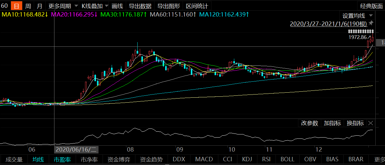 从2020年12月30日起,国防军工指数实现五连涨。最高达到1972.96点,为近一年来的峰值。