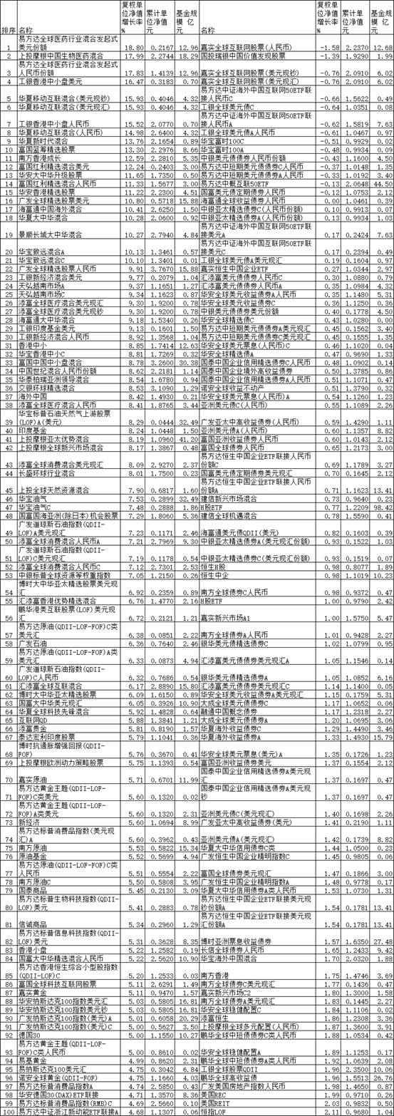 2020年12月份QDII基金涨跌幅前100名业绩一览