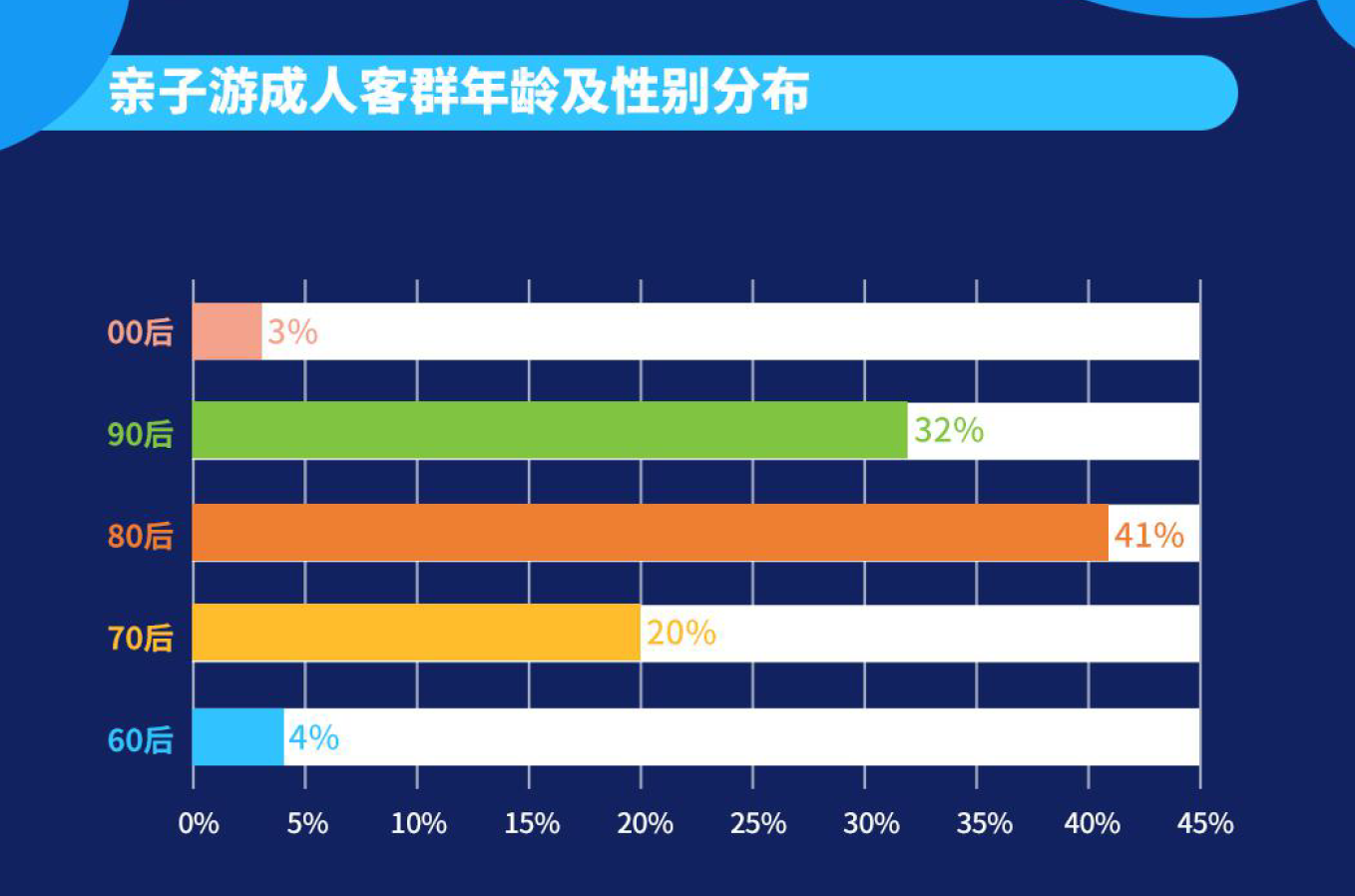 从父母和孩子的年龄层来看,在过去一年中,通过携程下单出游的“80后”父母占比高达41%、“90后”父母紧随其后占比32%、“70后”父母占比20%。