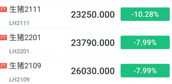 截至昨日收盘,生猪期货主力2109合约与远月2201合约双双跌停,跌幅均为7.99%,2111合约跌10.28%。