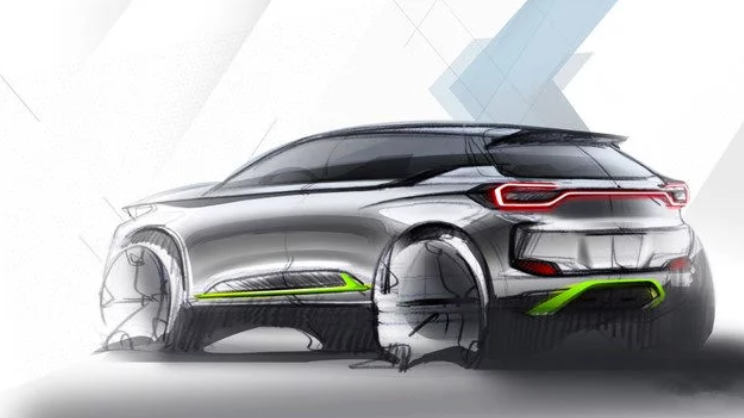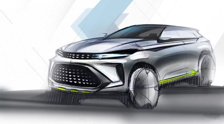 从曝光的新车外观草图可以看到,新车前脸部分采用夸张的大面积前格栅设计,龙鳞状点阵式中网搭配分体式头灯,整体视觉效果非常运动时尚。
