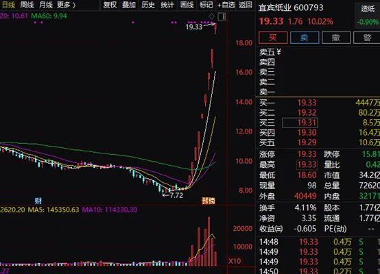 11月18日,宜宾纸业再次封住涨停,股价报19.33元,这已是该股连续第9个交易日涨停。