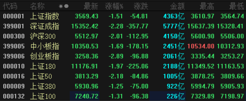 今日,A股深度调整,各主要股指均录得今年以来最大跌幅。上证指数失守2600点整数关,创业板指大跌近3%,深证成指也跌逾2%。两市成交10140亿元,较前一交易日大幅萎缩近2000亿元。盘面上猪肉、家居用品、煤炭、钢铁等板块表现相对活跃,军工、券商、工程机械、医疗保健等板块跌幅居前。
