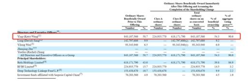 根据雾芯科技招股书,目前悦刻39岁的创始人汪莹拥有其54.3%股份,对应1612.7亿元市值。不过,另据招股书注释显示,汪莹还包括了代持员工期权池及高管持股,并非是CEO个人持股。
