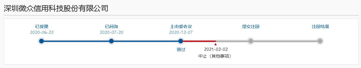 2月2日晚间,上交所披露,微众信科因发行人及其控股股东、实际控制人涉嫌贪污、贿赂、侵占财产、挪用财产或者破坏社会主义市场经济秩序的犯罪,或者涉嫌欺诈发行、重大信息披露违法或其他涉及国家安全、公共安全、生态安全、生产安全、公众健康等领域的重大违法行为,被立案调查或者被司法机关立案侦查,尚未结案。