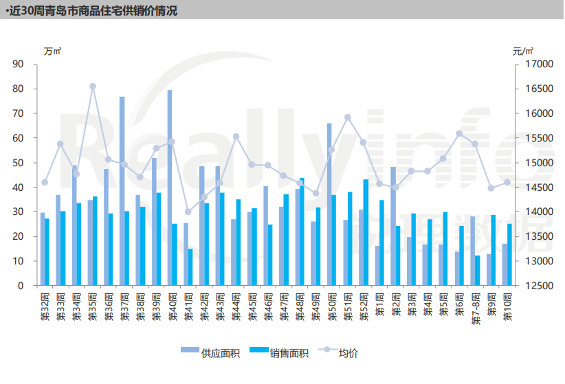 在供销两端,上周全市商品住宅新增供应上升,共1564套,约16.9万㎡,面积环比上升32%,上周新增住宅区主要集中在城阳区,新增面积为4.7万㎡,其次为西海岸新区。