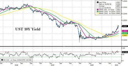 美银表示,5年期国债收益率可能在1.5%左右见顶,时间将在4月-9月间。2年期国债则“面临一波大跌走势”,并且“可能从现在发动至7月初”。