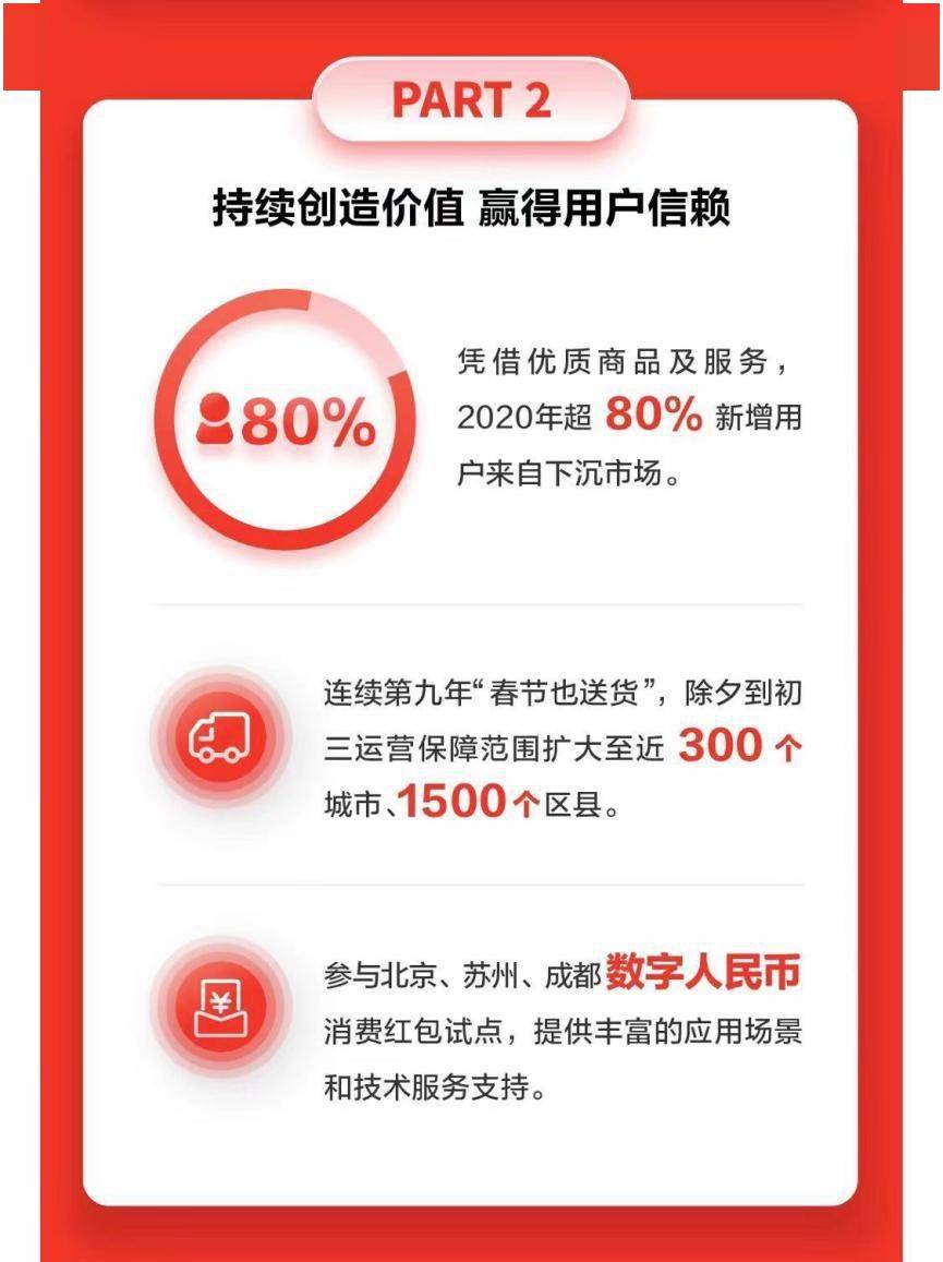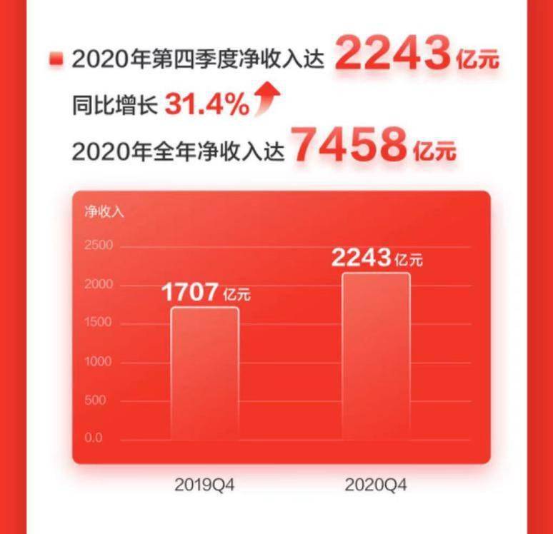 3月11日,京东集团发布2020年第四季度及全年财报。财报数据显示,京东第四季度净收入2243亿元人民币,同比增长31.4%。凭借优质商品及服务,京东连续第九年“春节也送货”,除夕到初三运营保障范围扩大至近300个城市、1500个区县。