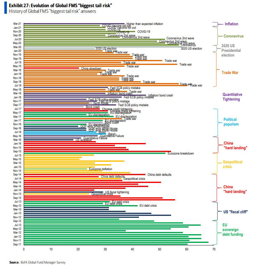 此次调查最大的发现是:新冠疫情对于华尔街而言,已经不是最大的风险。