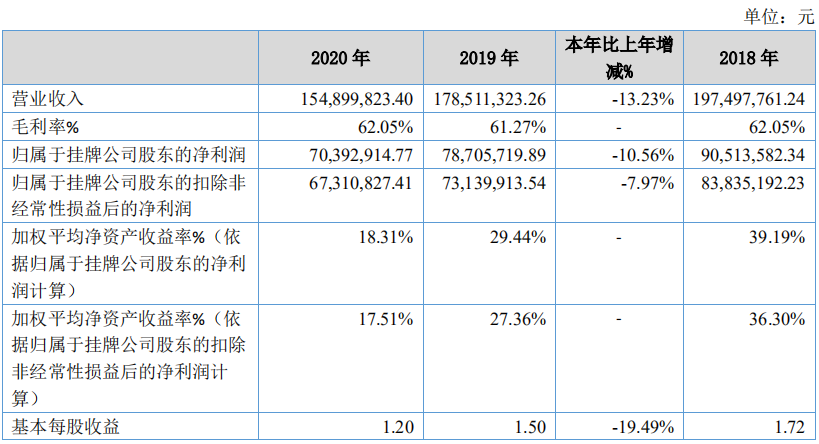 3月19日,资本邦了解到,泰祥股份(833874.OC)披露《2020年年度报告》,报告期内实现营业收入1.55亿元,同比下降13.23%;实现归属于挂牌公司股东的净利润7039.29万元,同比下降10.56%;实现经营活动产生的现金流量净额6883.42万元,同比下降3.05%。